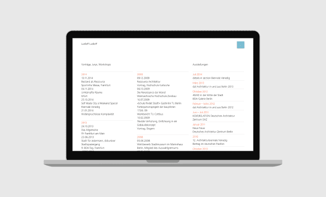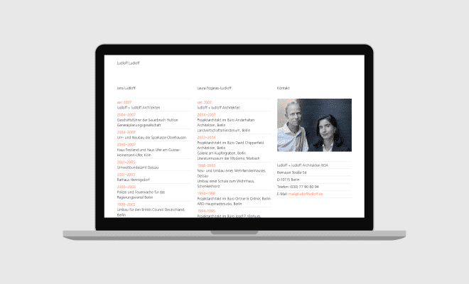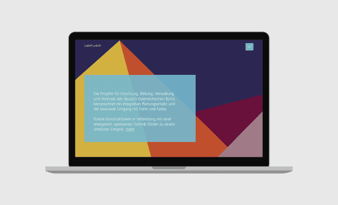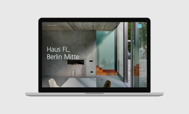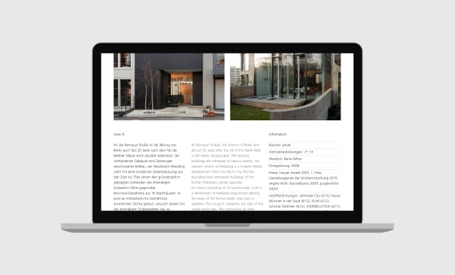 Großformatige Abbildungen machen diese Atmosphäre erlebbar. Zusätzlich dient die Website als Medium für Informationen zu Veröffentlichungen, Vorträgen und der Philosophie des Büros.