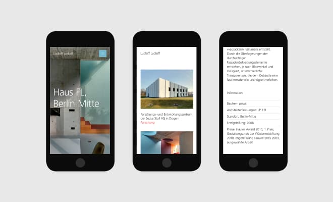 »Die Architektur von Ludloff Ludloff entsteht nicht durch formale Setzungen, sondern wird vom wahrnehmenden Subjekt aus entwickelt. Räume werden als Sequenzen erlebt, sie sind weniger durch Geometrien bestimmt, als durch Licht und Farbe, Haptik und Akustik, es entstehen Abfolgen von Atmosphären.«