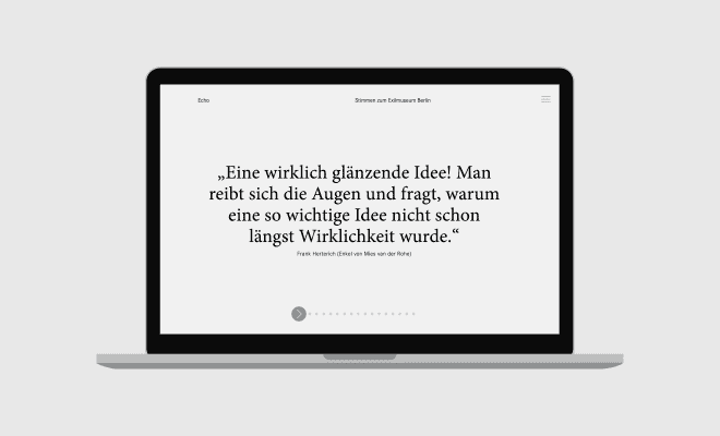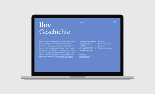 Die Geschichte des Exils neu erzählen: die Stiftung Exilmuseum Berlin hat sich unter der Schirmherrschaft von Herta Müller und dem ehemaligen Bundespräsidenten Joachim Gauck die Entwicklung eines Exilmuseums zum Ziel gesetzt. In einem neu zu schaffenden Museumsbau am Standort Anhalter Bahnhof werden die unterschiedlichen – bis heute relevanten – Aspekte der Themen Flucht, Vertreibung und Migration szenografisch-medial erfahrbar sein.